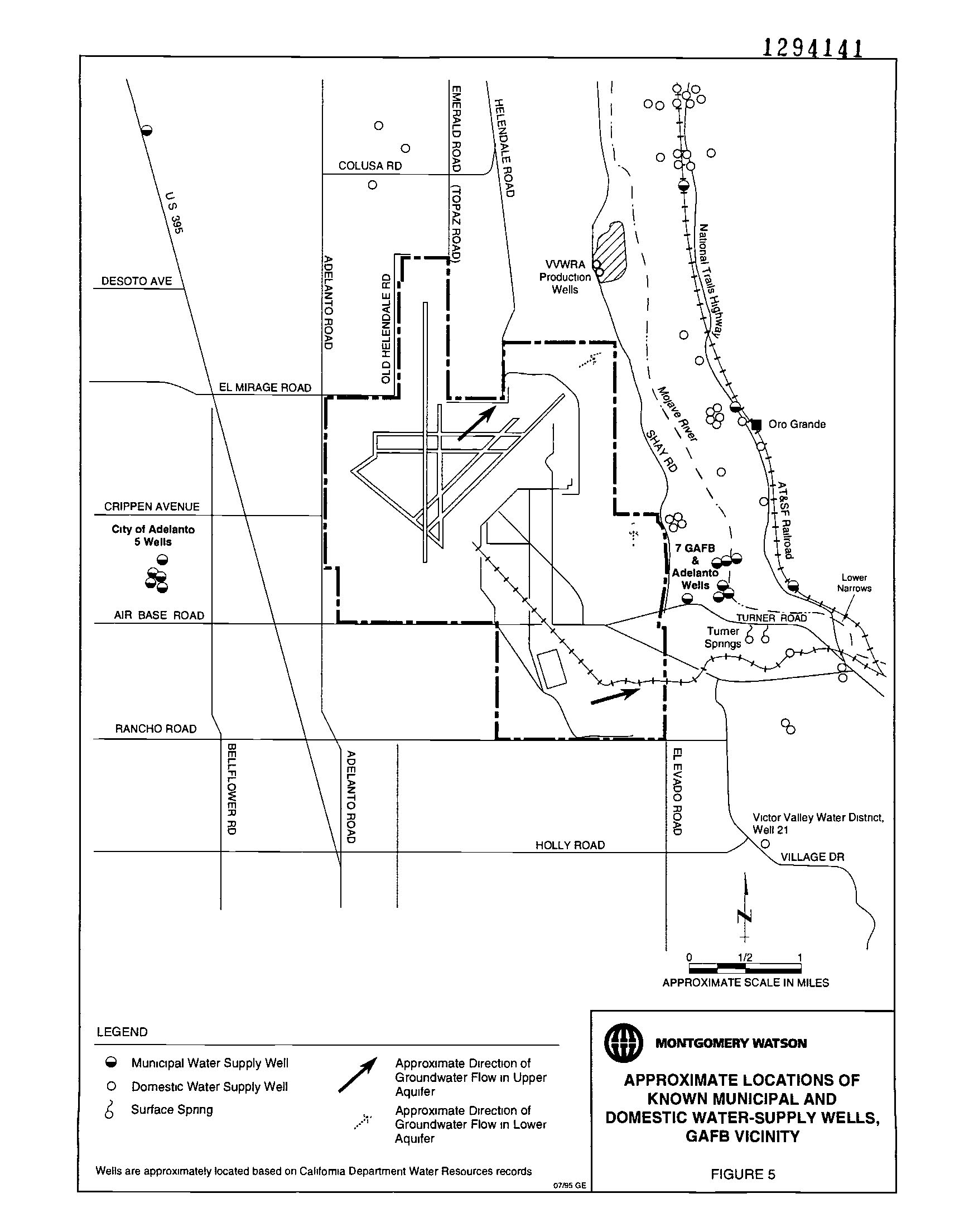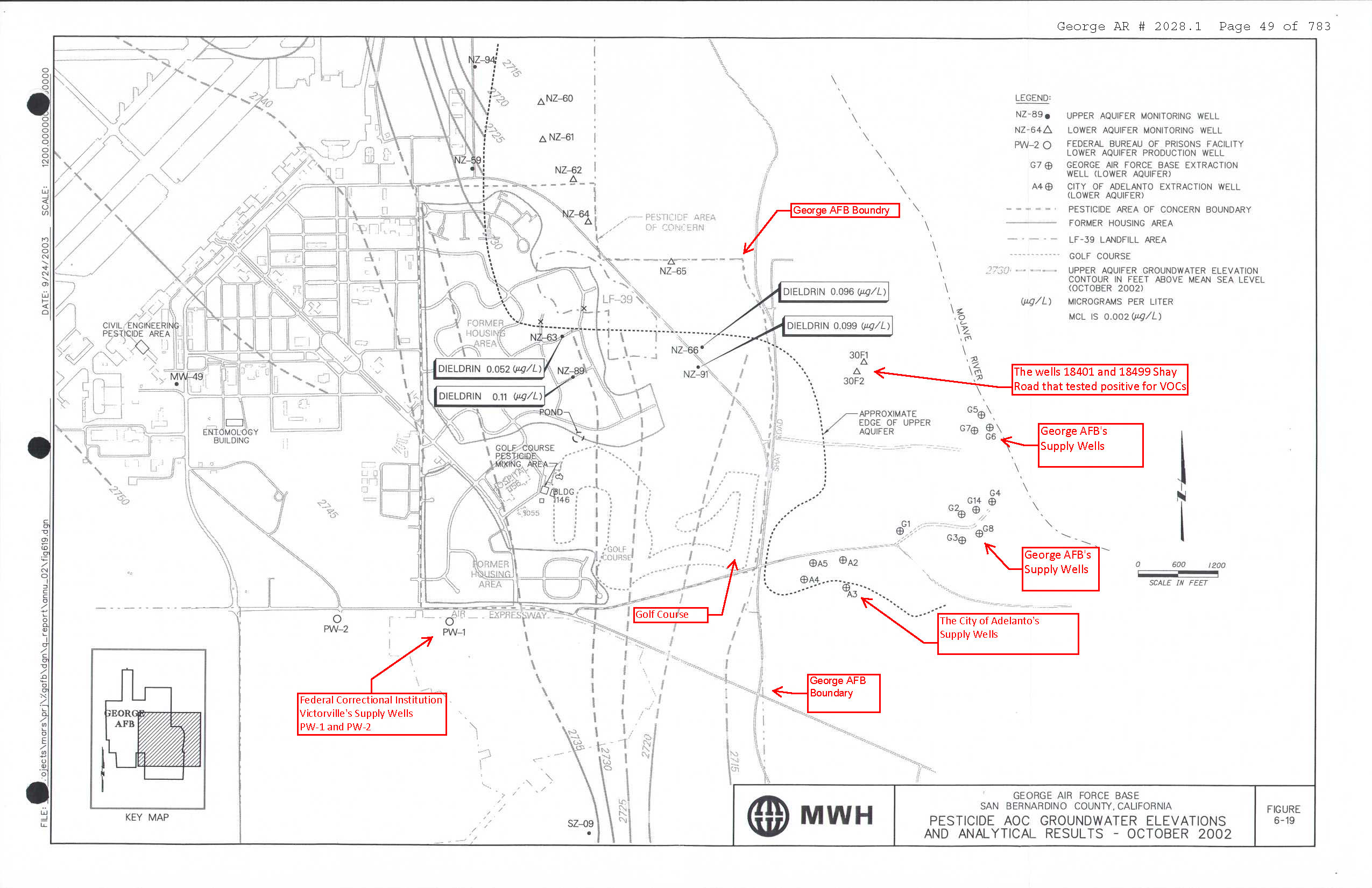 As early as 1982, the DoD knew that there were several sources for perchlorate contamination in the Southeast Disposal Area (SDEA). The SEDA is about a ¼ mile upstream of the drinking and irrigation water supply wells for George AFB, Adelanto, several homes/ranches, and the former Victor Valley Country Club. The groundwater flows to the northeast at George AFB (PDF) under the SEDA directly to the supply wells.
