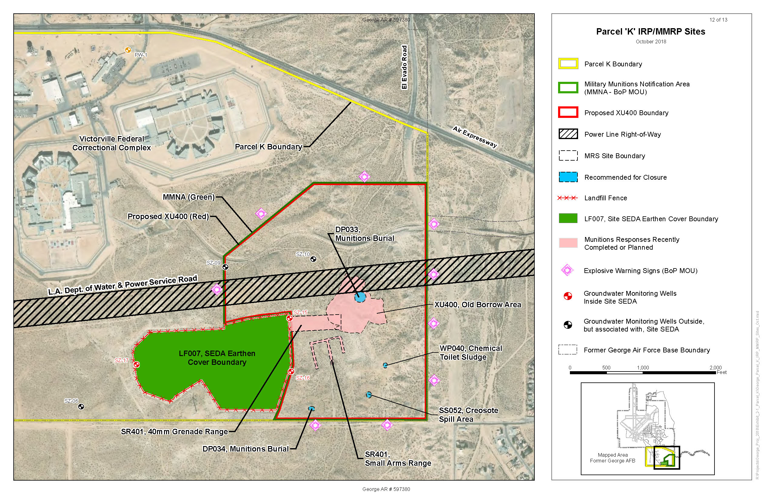 The former George AFB is located in the southwestern portion of San Bernardino County, California, approximately 90 miles northeast of Los Angeles and adjacent to the cities of Adelanto and Victorville. The installation was selected for closure under the BRAC process in 1988 and was officially closed in December 1992. At closure, the installation consisted of 5,062 acres.