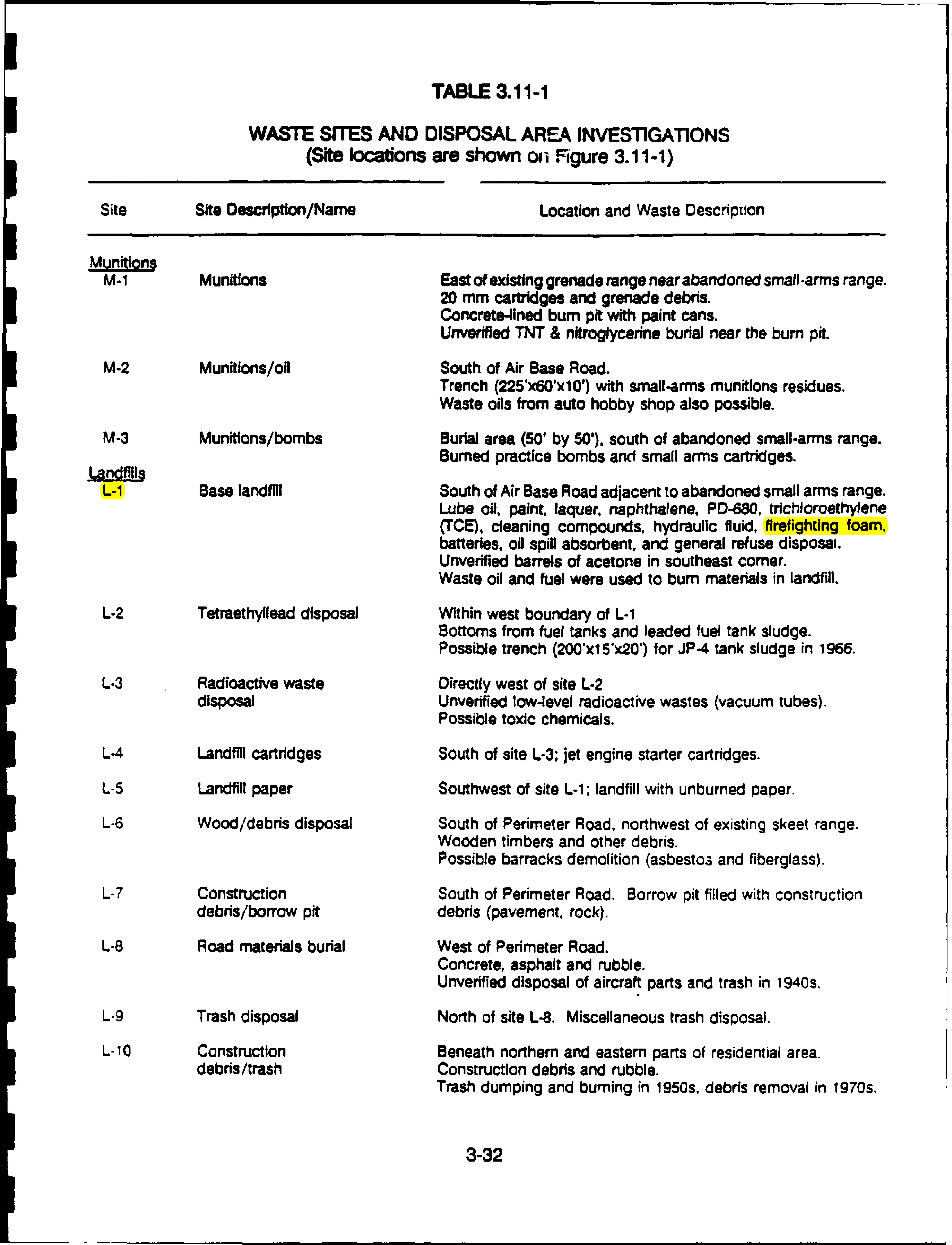 - LF-08 (SEDA) – “Tetraethyl Lead Disposal” – Avgas, Tetraethyl Lead – Benzene – Ethylene dibromide (EDB)