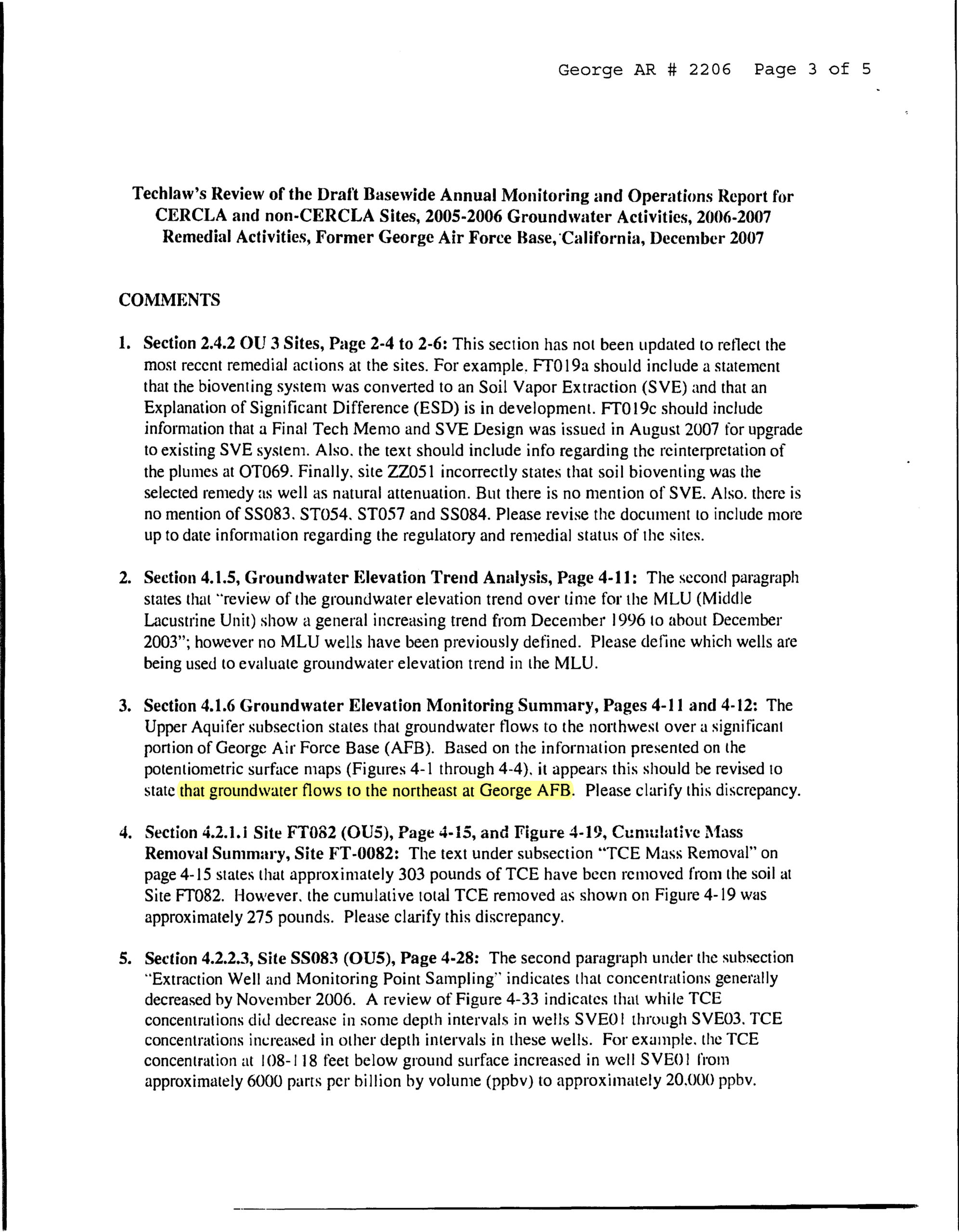 In 2005, the DoD published the report the “Perchlorate in the Southwestern United States” in response to the House Appropriations Committee’s request. In the report, the DoD made the following statement about George AFB, “… it was determined by DoD that the potential for perchlorate releases was negligible, and that sampling for perchlorate was unnecessary.”