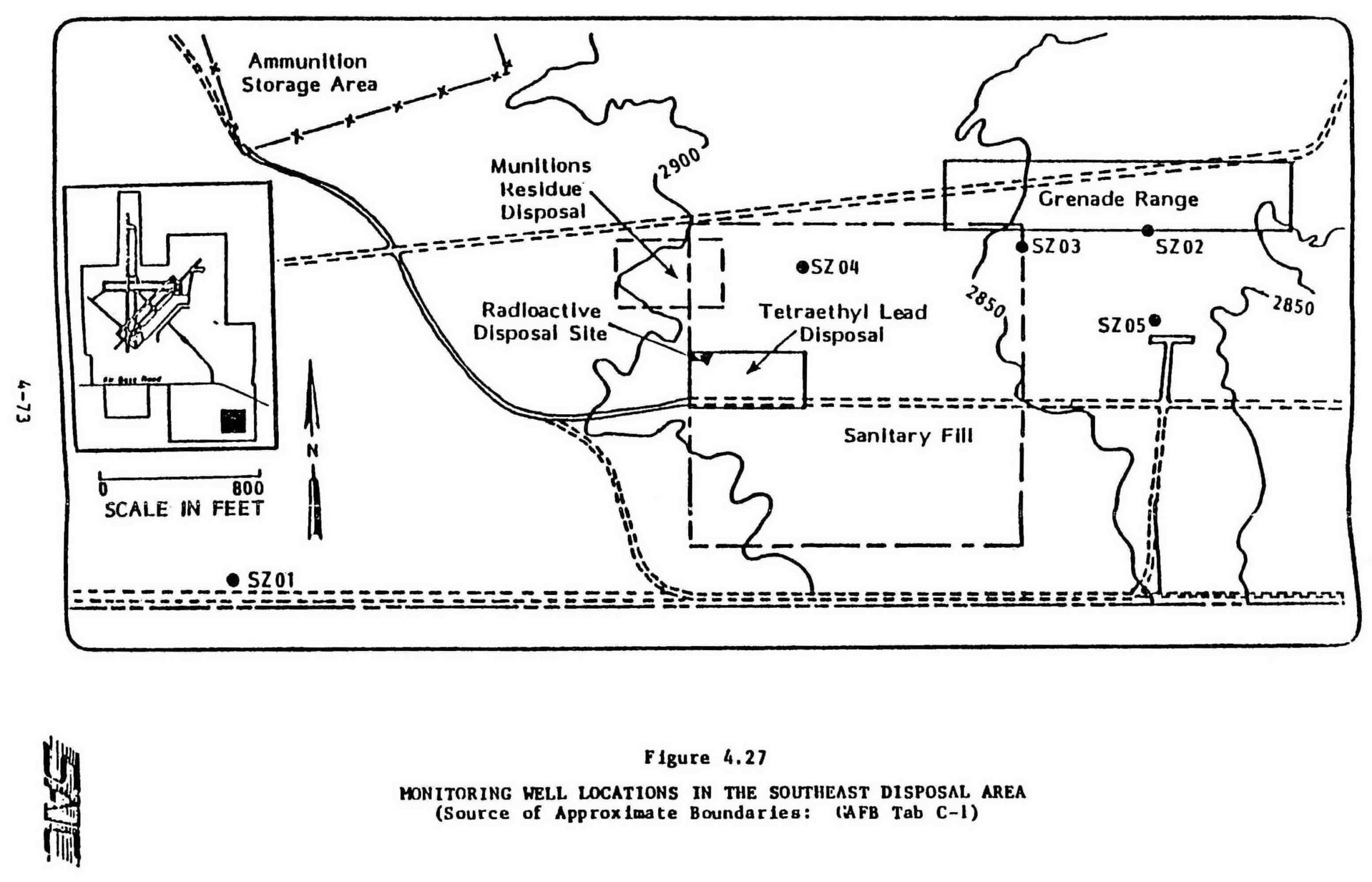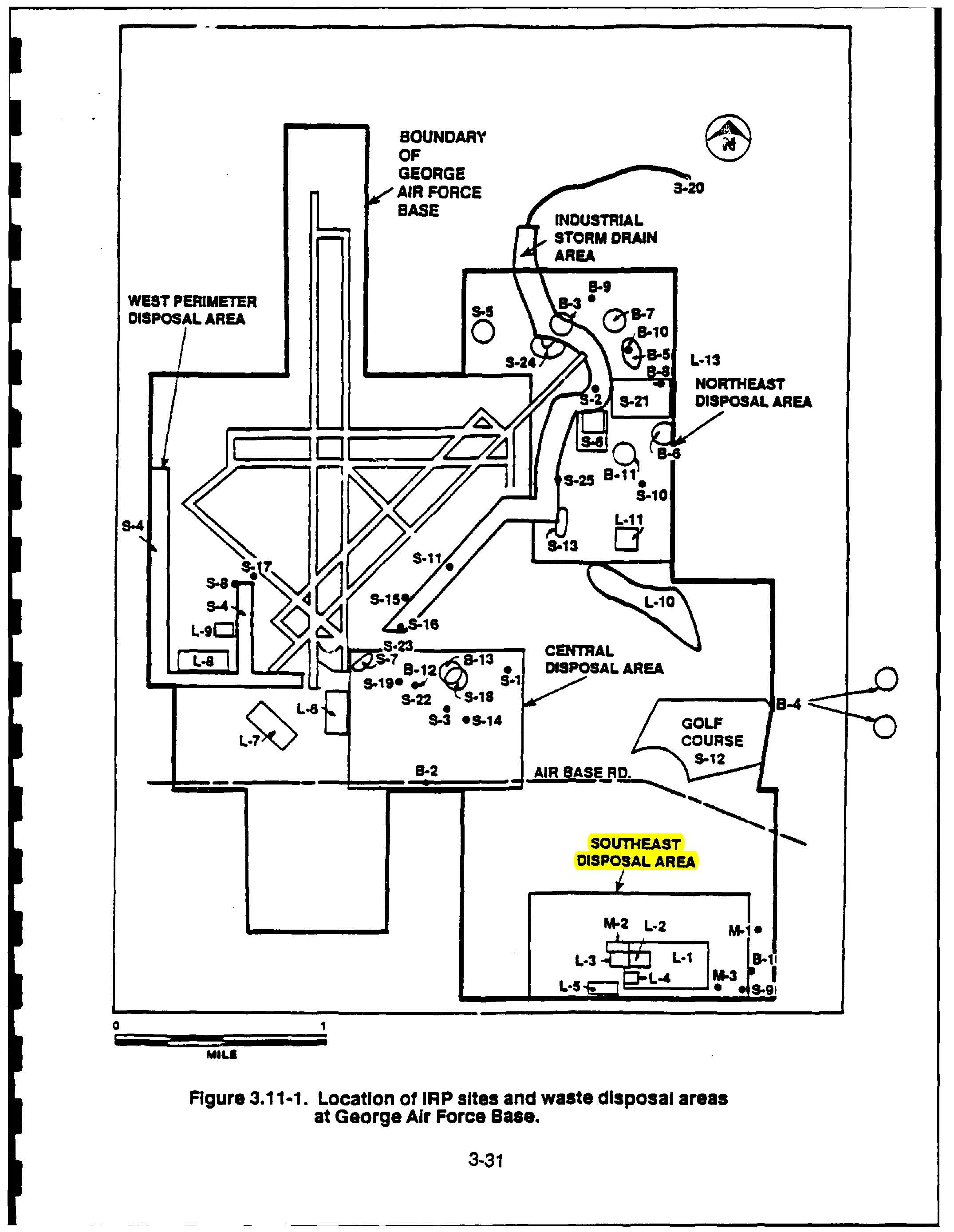 The Southeast Disposal Area (SEDA) had 12 Installation Restoration Program (IRP) sites (unpermitted dump-sites and unpermitted burn pits) containing: Avgas, VOCs, and weapons’ residue; industrial, chemicals, heavy metals, and/or radioactive wastes.